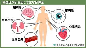 高血圧の主な合併症には、脳出血・脳梗塞、心筋梗塞、腎不全などがあり、長期にわたる高血圧が血管に負担をかけ、動脈硬化が進行することで引き起こされます。これらの合併症は自覚症状に乏しいため、早期発見と予防が非常に重要です。