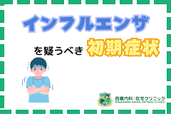 インフルエンザの初期症状は、突然の38℃以上の高熱、強い悪寒(ゾクゾク感)、全身の倦怠感、関節痛・筋肉痛、頭痛などが特徴です。多くの風邪と異なり、鼻水や喉の痛みなどの呼吸器症状は後から現れることが多く、全身症状が非常に強く、進行が速いのがポイントで、食欲不振も伴うことがあります。