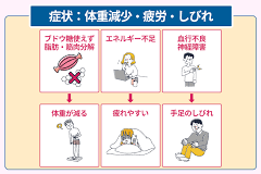 - 体重減少:糖がエネルギーとして使われず、代わりに脂肪や筋肉が分解されるため。