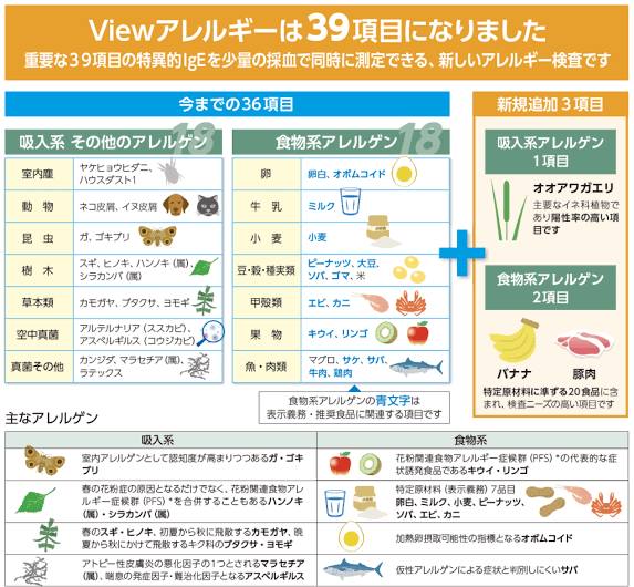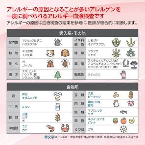 - 花粉症(季節性アレルギー性鼻炎・結膜炎): スギ、ヒノキ、ブタクサ、カモガヤ。